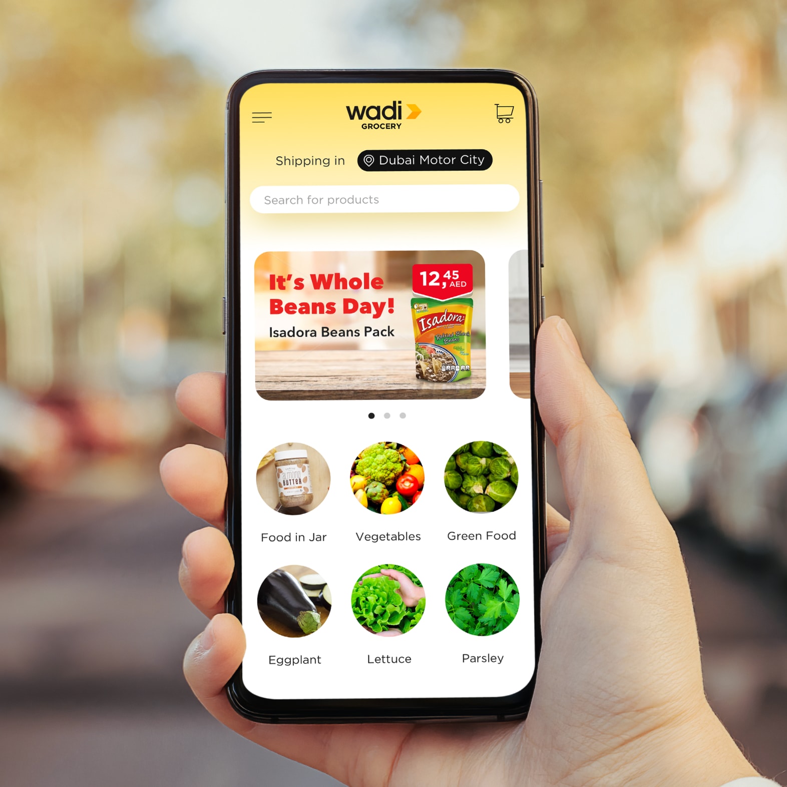 Mobile app design for Wadi Grocery, crafting a seamless grocery shopping experience for the Middle East market.